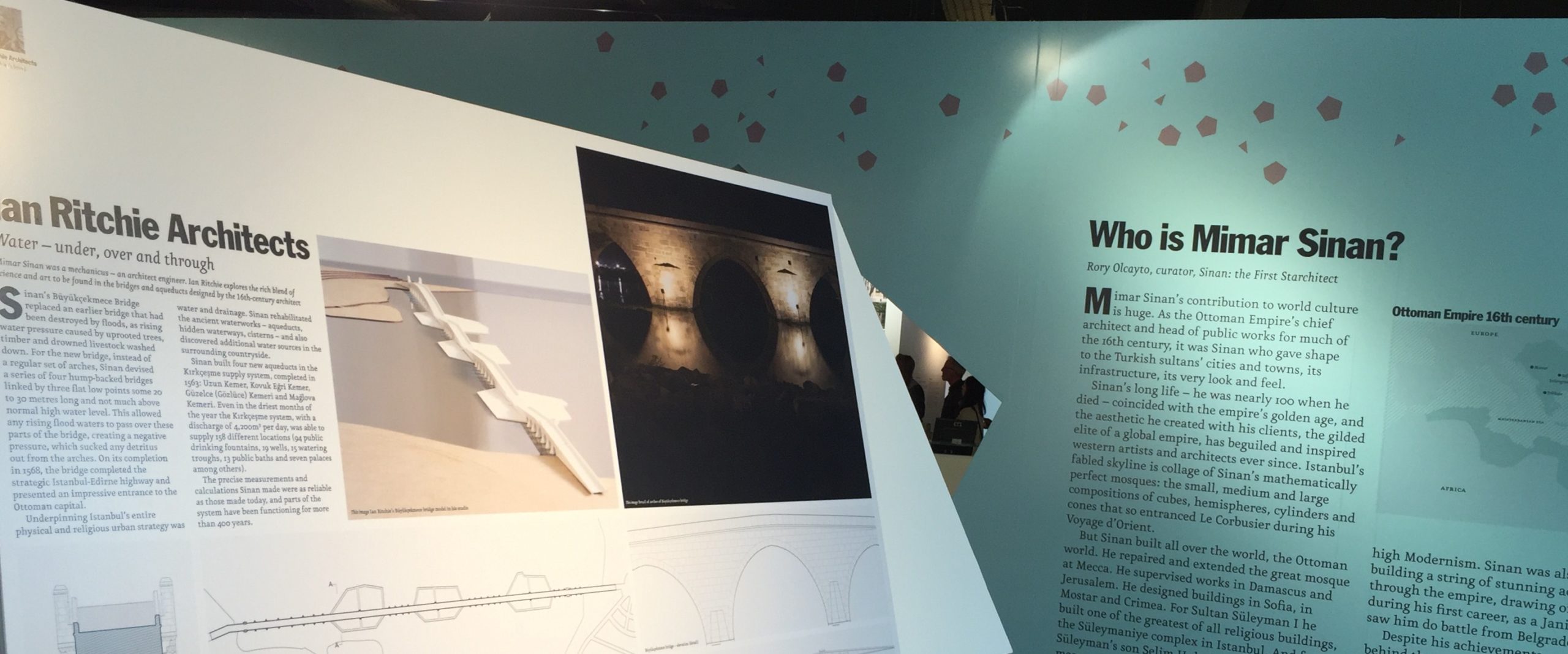 In November 2015, Turkishceramics and the Architects’ Journal took a group of British architects to Istanbul and Edirne on a research trip to study the work of Ottoman architect Mimar Sinan. The trip resulted in a book and exhibition featuring research projects by participating practices including Ian Ritchie Architects; writings by Ian Ritchie and drawings and a model of the Büyükçekmece Bridge by Matthew Rawlings.