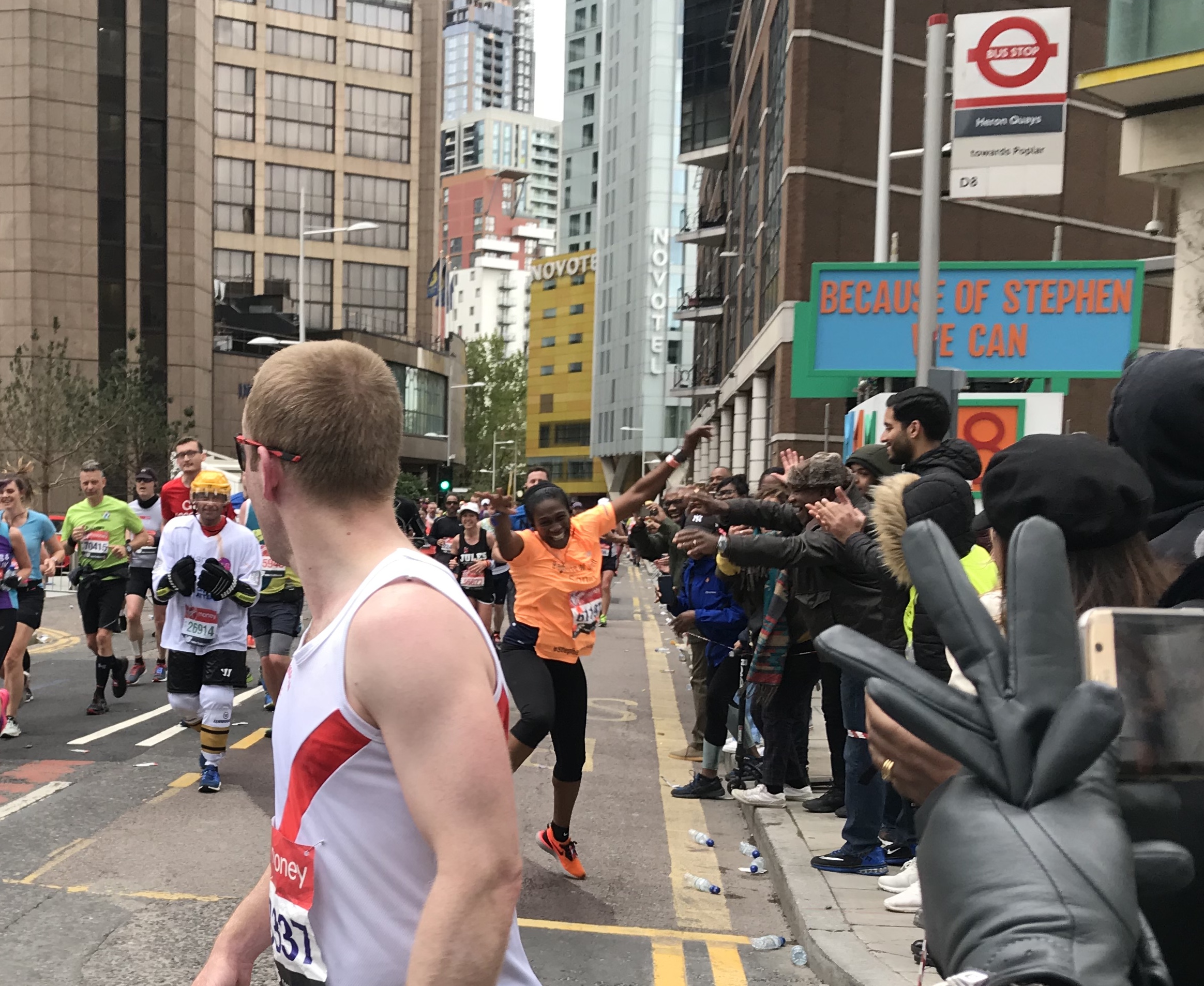 The event this year had a new ‘gateway’ named after Stephen Lawrence at 18 miles on March Wall by Canary Wharf. It will be there every year.