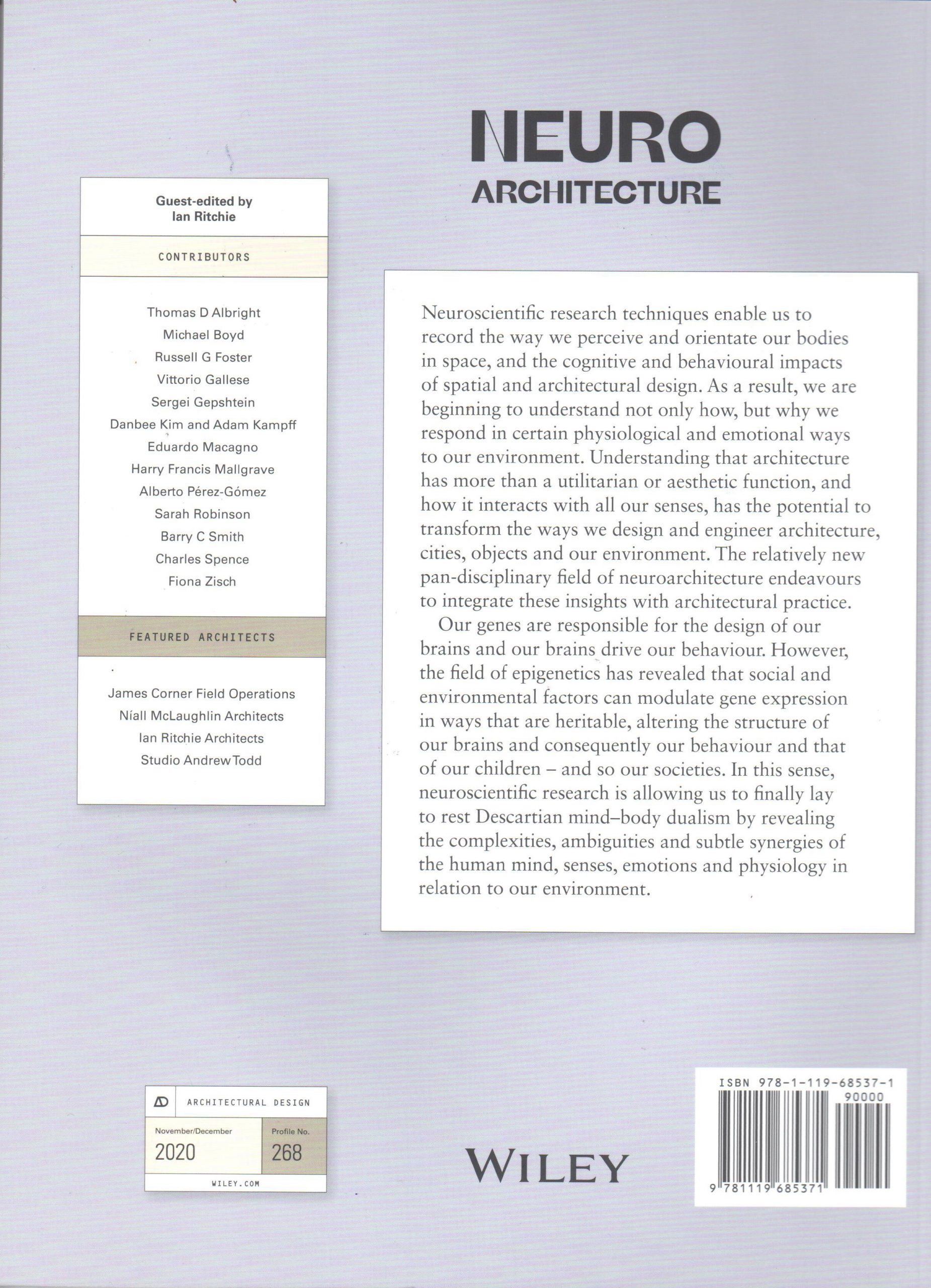 This neuroarchitecture edition Designing with the Mind in Mind will explore learning from neuroscience research to design better environments. Ian has invited a range of contributors from the fields of architecture, neuroscience, psychology and the performing arts.