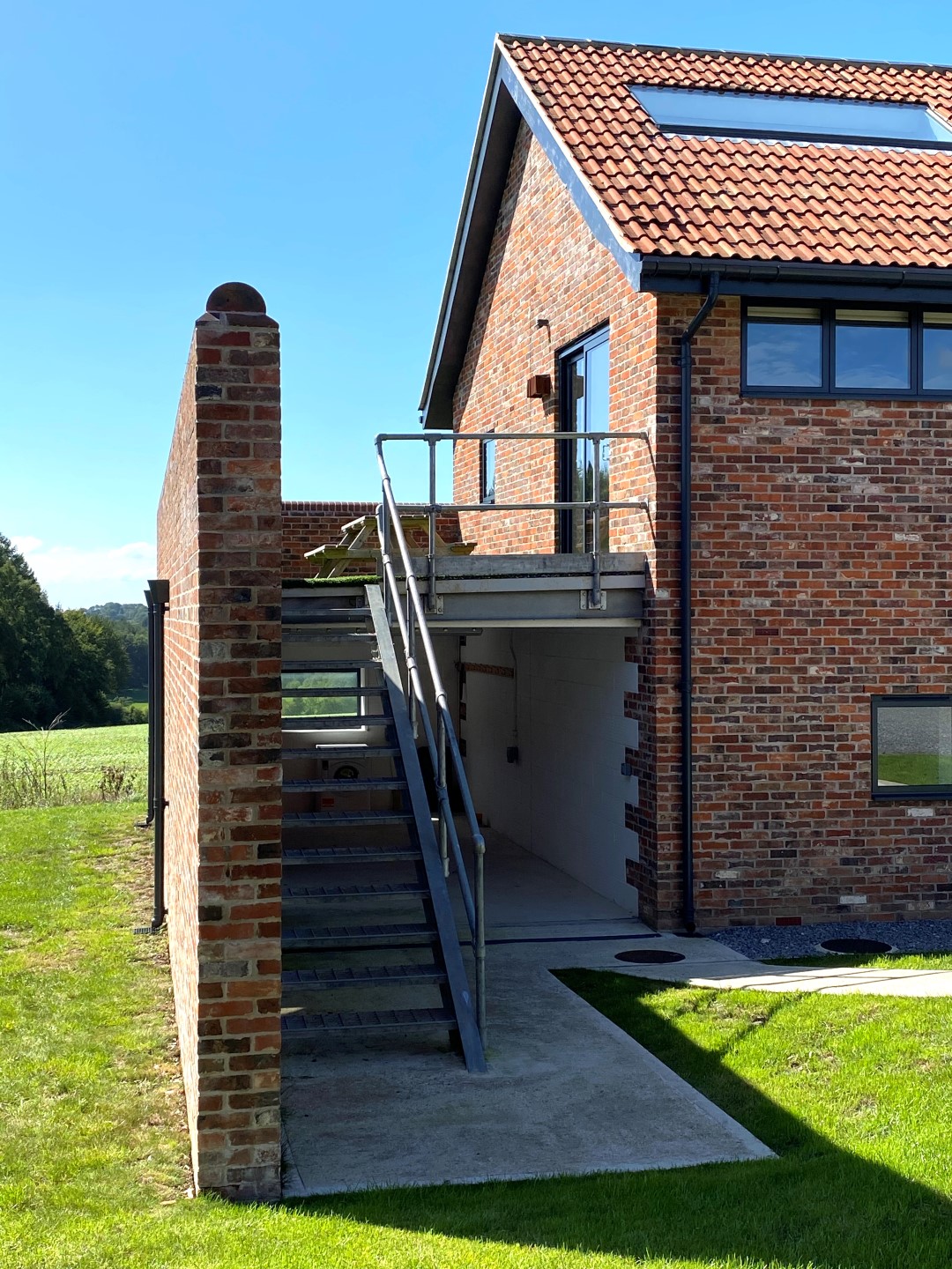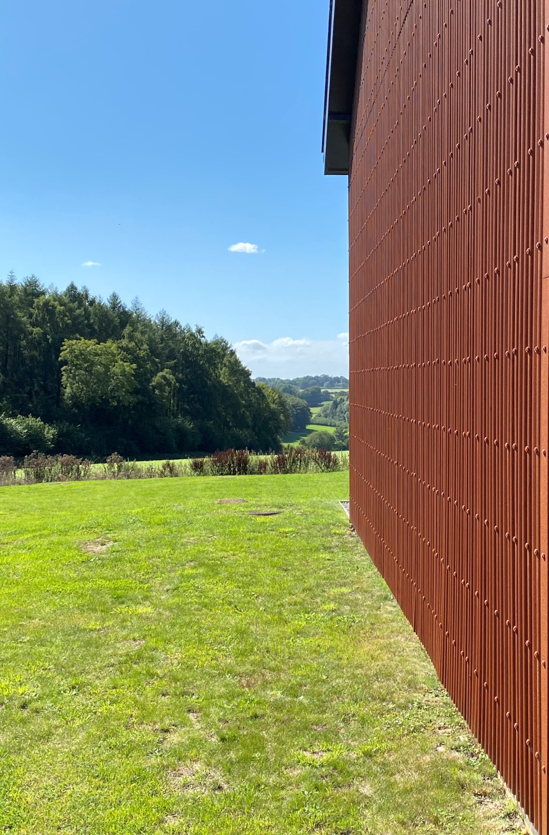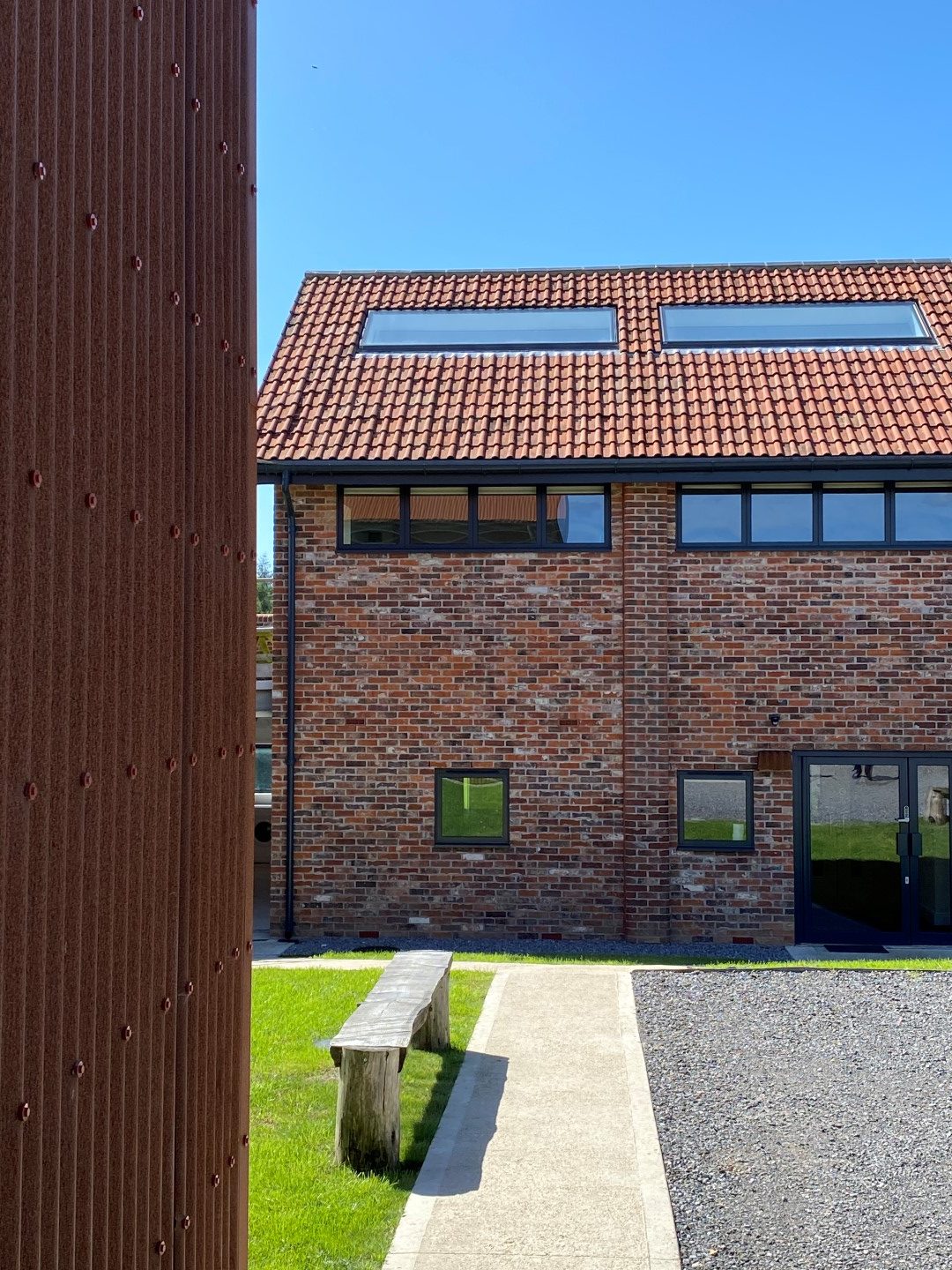 The designs were conceived by our office through to planning permission. Ian Ritchie and Jocelyne Van den Bossche visited the completed buildings in August 2020. The smaller one is entirely clad in sinusoidal Corten A sheet, and accommodates 6 people, while the larger brick and tiled barn accommodates 8 people and was built upon the remains of a barn. Further projects are envisaged on the estate.