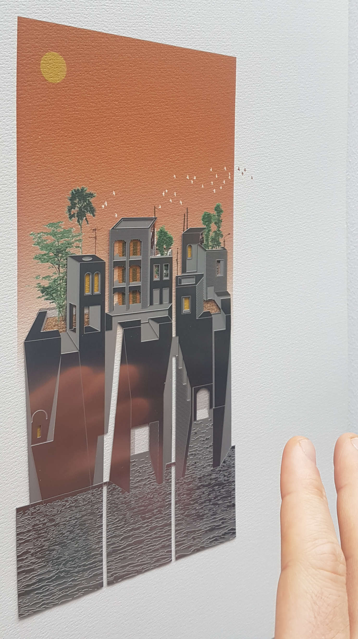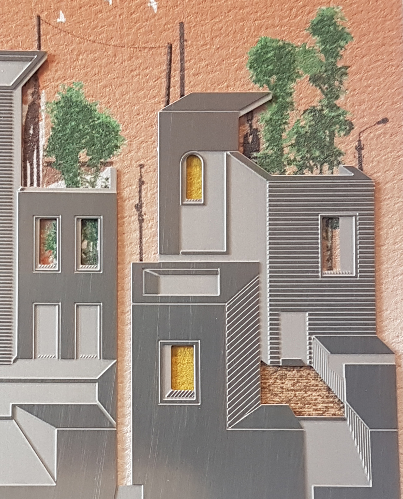 It consists of a photo-etched stainless steel plate mounted on a digital print.