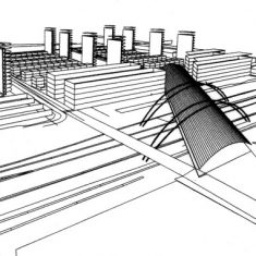 We proposed a partially covered pedestrian route forming a new and impressive landscape ‘landing strip’ which will structure the urban development between the station and the Messe. This would provide a coherent, flexible urban plan and an environmental and design framework which will allow the station and entrance route to the Messe to be built for the year 2000, The landscape rises in gentle waves from the Station Concourse level at +73.3m to the Messe Entrance at approximately +77.7m.